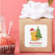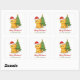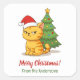 Pegatina Cuadrada Cranky Orange Tabby Cat Red Hat Christmas Tree