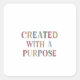 Este cautivador diseño de "Creado con un Pegatina de propósito" presenta una variedad de tonos pastel, cada palabra destacando en su combinación de colores única. La tipografía limpia realza el impacto del mensaje, convirtiéndolo en una pieza central impactante para cualquier espacio.