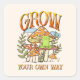 Pegatina Cuadrada "Crece tu propio camino" | Rana y hongo meditación