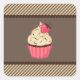 Pegatina Cuadrada Crema rosa Brown Strips Strawberry Cupcake