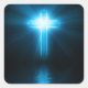 Pegatina Cuadrada Cruz cristiana en luz azul