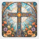 Pegatina Cuadrada Cruz Santa de Vidrio Manchado con Flores