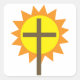 Una cruz contra un sol amarillo brillante. Este diseño parece realmente efectivo en estos Pegatinas