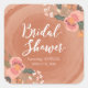 Pegatina Cuadrada Cuadrado de ducha de novia floral de madera marrón