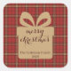 Pegatina Cuadrada Cuadro Rojo de Navidad Patrón Festivo -