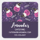 Pegatinas de negocios con un adorable patrón temático de Halloween. Gatos con gorras brujas, sentados sobre calabazas rosas con telarañas moradas en el fondo.
