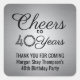 Añade un toque de acabado personalizado a la fiesta de cumpleaños gracias notas o favores con pegatinas/sellos para sobres cuadrados negros y grises personalizados. Todo el texto es sencillo de personalizar o eliminación. Esta plantilla está configurada para un 40 cumpleaños, pero puede cambiarse fácilmente a otro año o evento, como un aniversario. El diseño presenta un fondo de acero inoxidable plateado falso, caligrafía de escritura elegante "Saludos a 40 años" y un moderno mensaje de personalizable de tipografía minimalista en la parte inferior.
