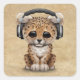 Pegatina Cuadrada Cub De Leopardo Cubo Dj Con Auriculares