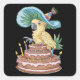 Pegatina Cuadrada cucaracha encaramada en pastel de cumpleaños gorra