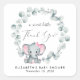 Pegatina amable de su ducha de bebé, gracias a las tarjetas y los favores de fiesta que incluyen "Un pequeño y dulce agradecimiento" en una mezcla de tipografía moderna y un guión elegante con un toque de corazón, y una acuarela de un elefante bebé rosa en una guirnalda de vegetación de eucalipto verde sabio. Personalice el nombre de la futura madre y la fecha de la ducha.