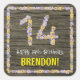 Este diseño rústico, floral, inspirado en el jardín, de pegatina cuadrado con temática de cumpleaños tiene el mensaje "Feliz cumpleaños 14", junto con un nombre editable para el destinatario. El gran número "14" más el borde ambos tienen iconos florales. El fondo tiene un patrón de imitación/imitación de grano de madera. Pegatinas con temas de cumpleaños divertidos como estos podrían ser distribuidos o usados en una fiesta de cumpleaños para alguien que está celebrando su décimo cuarto cumpleaños, o tal vez usados al preparar invitaciones o envolver regalos/regalos para un evento de este tipo. [~Z0000654]