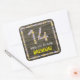 Pegatina Cuadrada Cumpleaños 14: Número Floral, apariencia de madera
