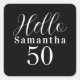 Pegatina Cuadrada Cumpleaños 50 Hola 50 Fiesta Negra y Blanca