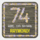 Pegatina Cuadrada Cumpleaños 74: Número Floral, apariencia de madera