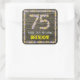 Este diseño rústico, divertido, inspirado en la naturaleza, de pegatina cuadrado de cumpleaños tiene el mensaje "Feliz cumpleaños 75" y un nombre personalizado para el destinatario. El gran número "75" más el borde incluye iconos florales. El fondo presenta un patrón de imitación/imitación de grano de madera. Pegatinas florales con temas de cumpleaños como estos podrían ser distribuidos o usados en una fiesta de cumpleaños para alguien que está celebrando su cumpleaños setenta y cinco, o quizás usados cuando preparan regalos o invitaciones para un evento de ese tipo. [~Z0000654]