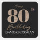Pegatina Cuadrada Cumpleaños 80 elegante con brillo negro y dorado