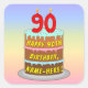 Pegatina Cuadrada Cumpleaños 90: Torta divertida y velas + nombre pe