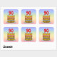 Este animado y colorido diseño de pegatina cuadrado con temática de cumpleaños presenta una representación al estilo personalizado de una torta de cumpleaños de tres niveles con velas en forma de número en la parte superior que muestran la edad de "90", junto con el mensaje "FELIZ cumpleaños 90", y un nombre de destinatario personalizado. El fondo presenta un diseño de gradiente inspirado en el espectro de colores pastel. Pegatinas como estos podrían ser usados para celebrar el cumpleaños 90 de alguien. [~Z0000624]