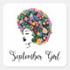 Pegatina Cuadrada Cumpleaños colorido y Chica de septiembre
