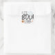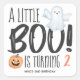 Pegatinas de tema de Halloween para cumpleaños de octubre (o sellos de sobre) que presentan tipografía "Un pequeño boo está convirtiendo...." con un fantasma de acuarela linda y una calabaza y acentos de escritura a mano. Los colores gris y naranja son perfectos para una niña o un niño. Arte de KL Stock.
