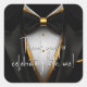 Pegatina Cuadrada Cumpleaños de Hombre con Esmoquin Dorado