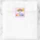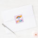 Pegatina Cuadrada Cumpleaños de niñas cielo arcoíris Morado