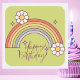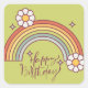 Pegatina Cuadrada Cumpleaños Feliz Moderno Arcoíris Retro