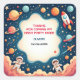 Pegatina Cuadrada Cumpleaños Gracias Tarjeta de Astronauta de Space