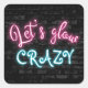 Pegatina Cuadrada Cumpleaños Neon Glow Rótulo en ladrillo