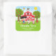 Pegatina Cuadrada Cumpleaños Rojo Granja Chica Pelo Negro Gracias