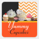 PEGATINA CUADRADA CUPCACAS DE CUMPLEAÑOS/CAÑÓN BLANCO NARANJA