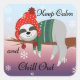 Este diseño presenta un adorable meme de pereza con una linda y divertida eslogan "Keep Calm" en un gorra y bufanda de invierno, en una extremidad de árbol.