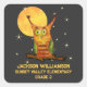 Pegatina Cuadrada Curte Owl Watercolor Style School Name Year