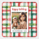 Pegatina Cuadrada Custom Happy Holidays Fun Plaid Red Green Photo