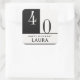 Pegatina Cuadrada Custom Name & Age Black and White Birthday