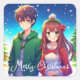 Pegatina Cuadrada Cute Anime Couple | Feliz Navidad