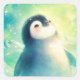 Pegatina Cuadrada Cute Baby Penguin Gazing at Aurora Borealis Sky