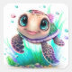 Pegatina Cuadrada Cute Baby Sea Turtle Illustration – Adorable Ocean