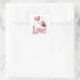 Pegatina Cuadrada Cute Bee Fluffy Pink Love Heart Balloon Design