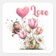 Pegatina Cuadrada Cute Bee Love Heart Balloon Spring Flowers