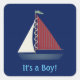 Pegatina Cuadrada Cute Blue Toy Sailboat