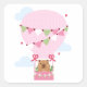 Pegatina Cuadrada Cute Capybara Hot Air Balloon Pink Birthday Party