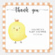"Gracias". "Un poco de pollo está en camino". ¡Celebra con este fiesta de ducha de bebé con tema de pollo con personalizado! Acuarela linda chica con cara de bebé. jaula naranja.
