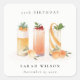 Pegatina Cuadrada Cute Cóctel de Frutas Rosado Naranja Cumpleaños de