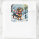 Pegatina Cuadrada Cute Dachshund Puppy Cozy Winter Scarf Art