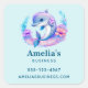 Pegatinas de negocios con un ilustracion adorable. Un delfín azul y púrpura rodeado de flores submarinas de color bonito.