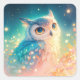 Pegatina Cuadrada Cute Fantasy Owl with Large Blue Eyes
