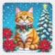 Pegatina Cuadrada Cute Festive Orange Cat Christmas