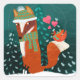 Pegatina Cuadrada Cute Fox and Cardinal Winter Sticker
