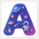 Pegatina Cuadrada Cute Glossy Space Alphabet Letter A – Galaxy Theme